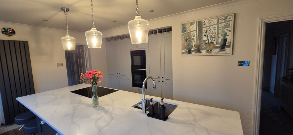 I just wanted to thank you for all your help and patience with our recent kitchen purchase. We were quite set in our ways, and without your guidance we would not have the amazing kitchen we have today. The whole team was great and really efficient. We had a fairly small area and presented Shaun with plans from another well known kitchen supplier that we were happy with but Shaun presented a proposal which moved the tall unit to the opposite wall as well as other options which as you can see filled the room with light. We needed some bespoke depth units as we had lots of pipes showing which as you can see left a seamless finish with not a pipe or Boiler in sight but believe me they are there. When we first visited the showroom we nearly left assuming we could not afford a kitchen from Units Online base on the beautiful showroom displays but how wrong we were, we saved so much and the build quality is fantastic. Thank you so much Shaun for all of your advice and to everyone at Units Online where it seams the word service really means something!